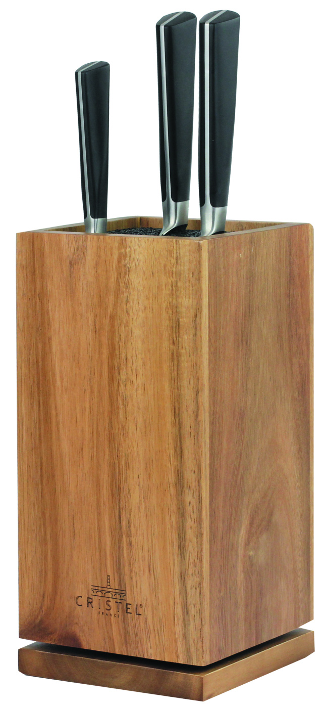 Bloc à couteaux rotatif en acacia - Cristel