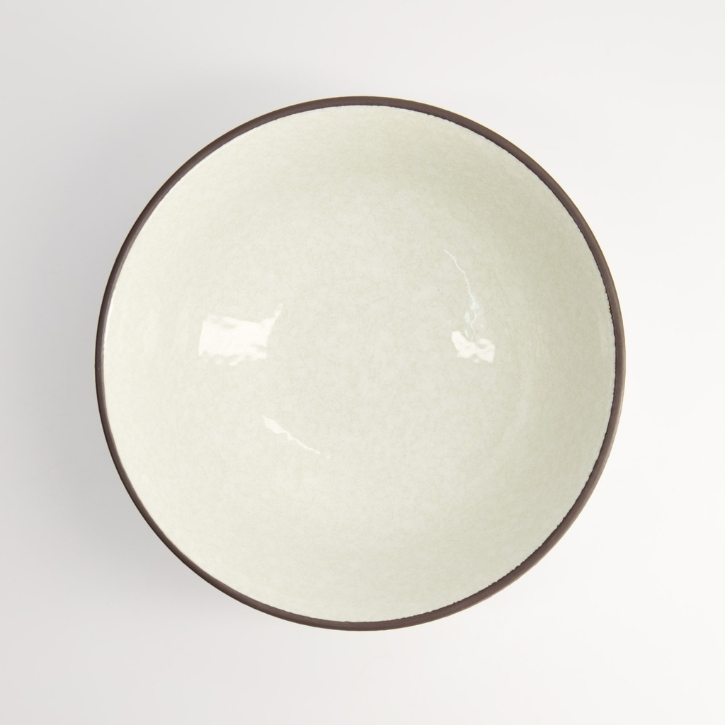 Fabriqué en grès japonais, le bol à ramen Hime Kobiki allie élégance et fonctionnalité. La glaçure claire, presque nacrée, et le fin bord sombre confèrent au bol une esthétique intemporelle qui met en valeur les couleurs des ramen, soba ou udon.