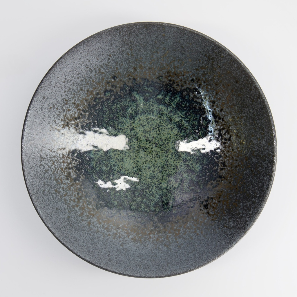 L'émail est vibrant et réactif, donnant à chaque bol une variation unique de ton et de texture, tantôt plus métallique, tantôt plus douce et plus verte. La surface mate contrastant avec l'intérieur lisse, il convient aussi bien aux ramen qu'aux donburi, aux salades ou au service de plats chauds dans la gastronomie moderne.