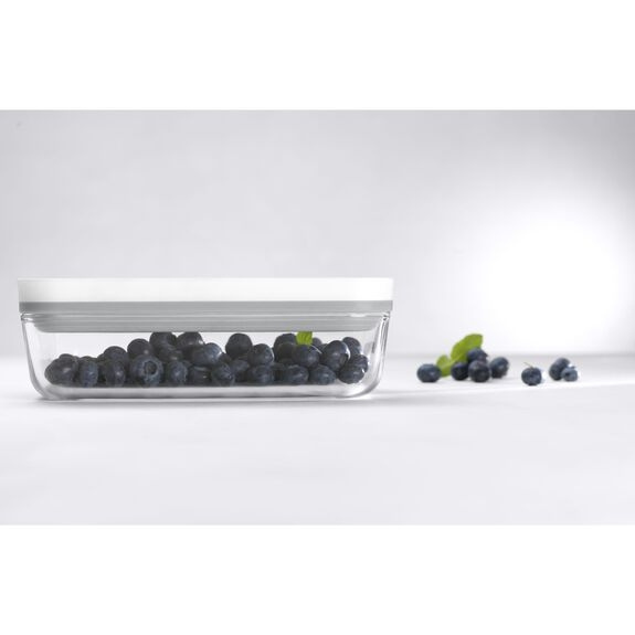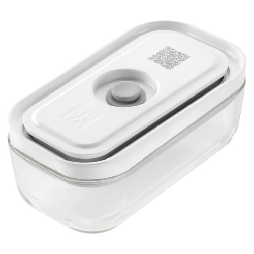 Lot de trois boîtes en verre borosilicaté pouvant être utilisées au congélateur, au four, au micro-ondes et au lave-vaisselle. Fixez la pompe Fresh & Save à la valve du couvercle, extrayez tout l'air et faites durer le contenu jusqu'à cinq fois plus longtemps que s'il n'était pas mis sous vide. Résiste à une plage de températures allant de -20°C à +180°C (le couvercle ne résiste pas au four). Chaque boîte est dotée d'un code QR unique qui permet d'organiser le contenu de la boîte et vous aide à savoir quand vous devez utiliser le contenu en envoyant des notifications push via l'application Zwilling (qui est gratuite). Comprend une petite boîte (15,5 cm x 8,5 cm x 7 cm et 0,35 L), une moyenne (18,2 cm x 11,2 cm x 9,8 cm et 0,9 L) et une grande (21,4 cm x 14,4 cm x 12,8 cm et 2 L). Pompe achetée séparément.