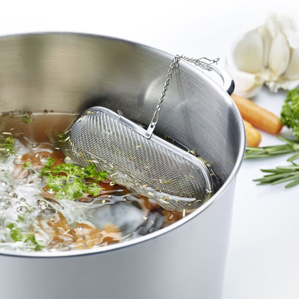 Avec une longueur d'env. 11 cm de long et plus de 4 cm de diamètre, la passoire à épices ovale est la taille idéale pour conserver les épices et les herbes pendant la cuisson et convient également à la préparation du thé dans une casserole de taille appropriée. Elle peut être remplie facilement en ouvrant simplement le couvercle et refermée hermétiquement grâce au mécanisme de fermeture latéral. La longue chaîne avec crochet intégré évite que la passoire ne tombe dans la casserole pendant la cuisson. Cette passoire pratique en acier inoxydable est idéale pour la maison et le restaurant. Elle n'a pas de goût et se nettoie facilement au lave-vaisselle après usage.