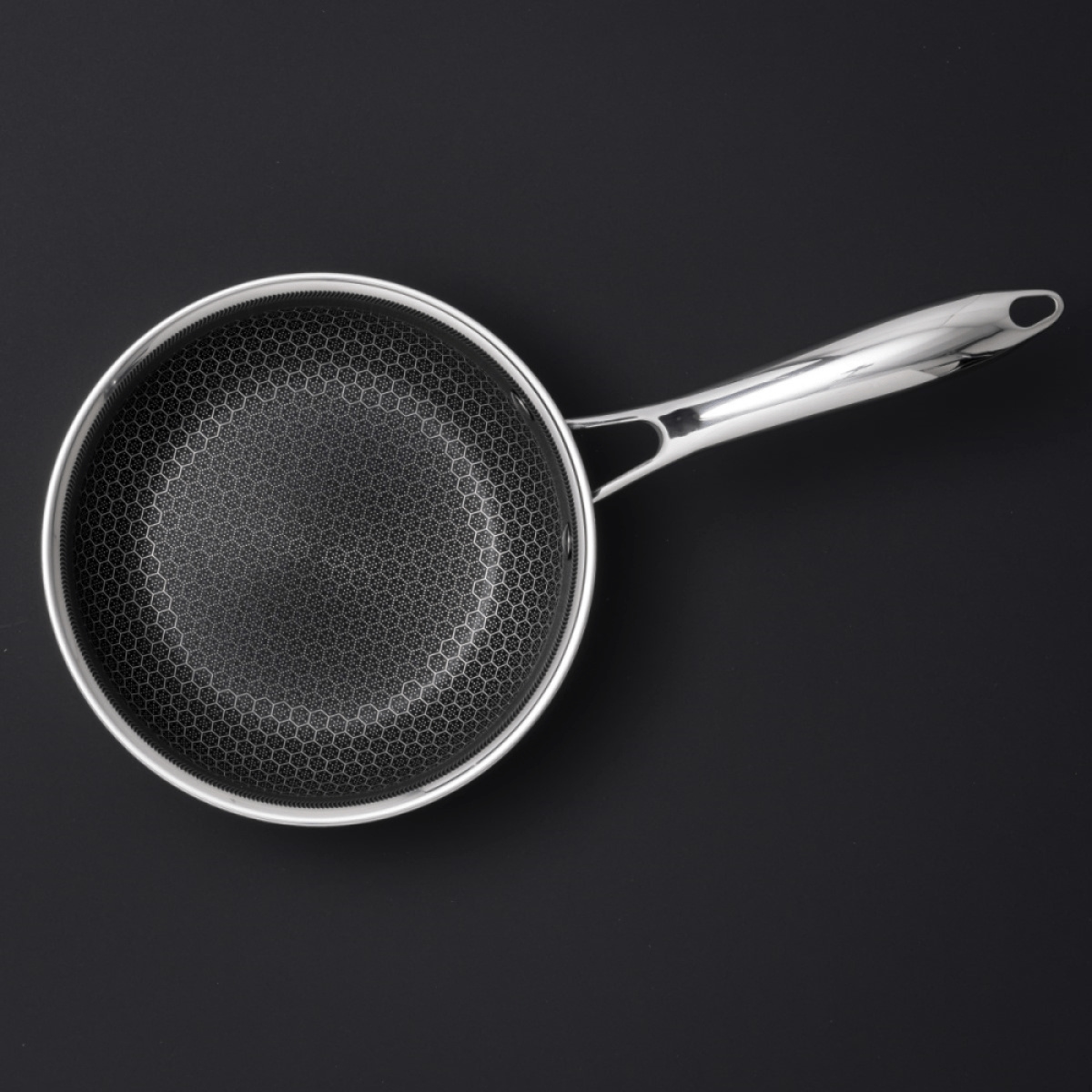 - Poêle hybride en acier inoxydable + revêtement antiadhésif