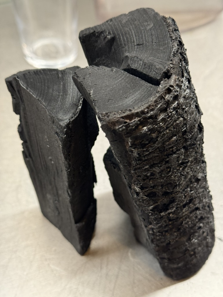 Charbon de bois de première qualité issu du bouleau de montagne de Laponie. Densité extrêmement élevée due au fait que le bouleau de montagne pousse de 2 mètres en 30 ans alors que les arbres dont provient le reste du charbon de bois poussent de 30 mètres en 2 ans. Le charbon de bois de bouleau pur et fin permet d'obtenir des températures extrêmement élevées, une longue durée de combustion et un faible dégagement de fumée.