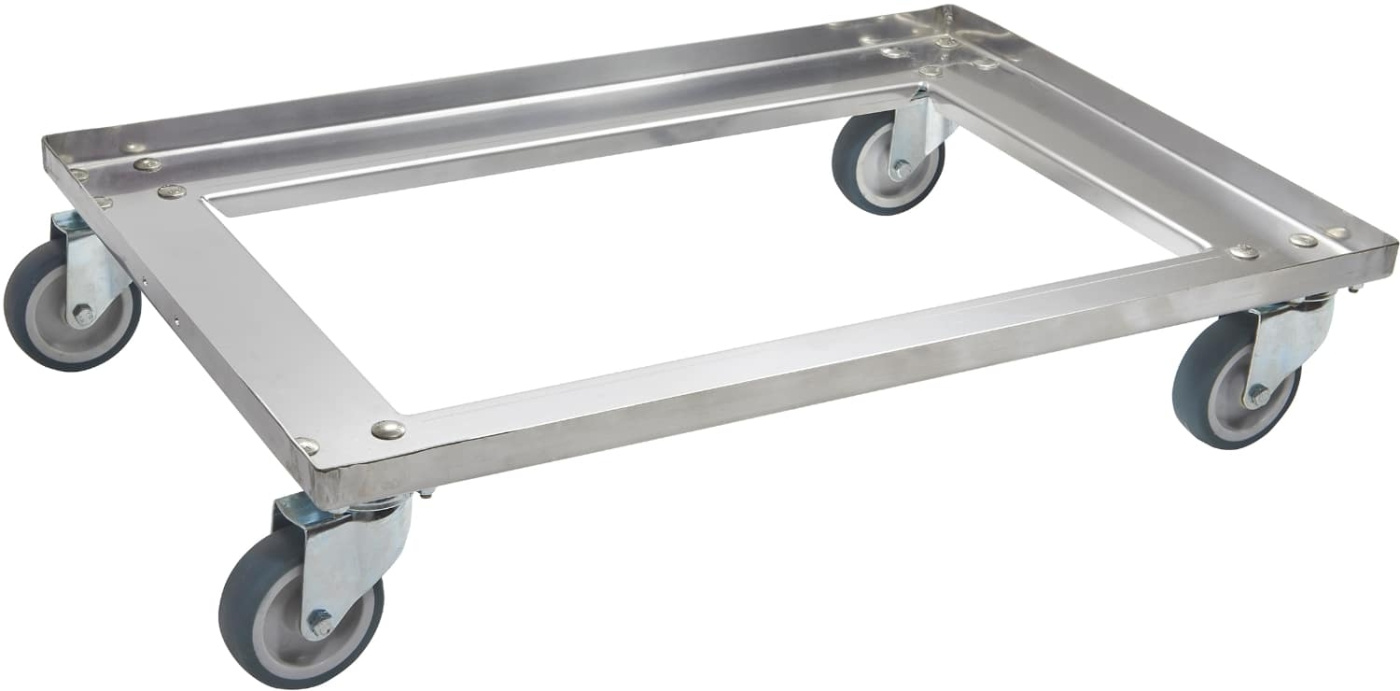 Châssis en inox pour les caisses de transport TOP-BOX GN 1/1 de Schneider. Dimensions de base 400x600 mm, identiques à celles de la caisse. Le chariot sous la caisse rend l'ensemble du système mobile, soulageant le personnel lors du transport sur les sols de cuisine et de traiteur. Capacité de charge 300 kg. L'une des roues est munie d'un verrou pour immobiliser la caisse lors du chargement et du déchargement.