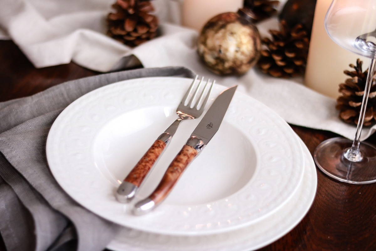 Comme les manches des couverts sont fabriqués à la main à partir de matériaux délicats, ils doivent continuer à être traités avec le même soin que celui que leur ont accordé les fabricants. Il ne faut donc pas les passer au lave-vaisselle ni les faire tremper, mais les sécher et les polir soigneusement à la main.