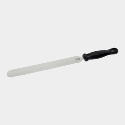 Couteau à palette à grandes dents en fibre de carbone de la série FKOfficium de de Buyer. L'acier inoxydable X20CR13 et le manche ergonomique sont d'une qualité robuste et solide. Utilisez-le par exemple pour fendre les fonds de gâteaux ou pour étaler la garniture sur vos pâtisseries. Dimensions : lame de 25 cm de long / 39,5 cm de long / 3,5 cm de large lame de 35 cm de long / 50 cm de long / 3,5 cm de large