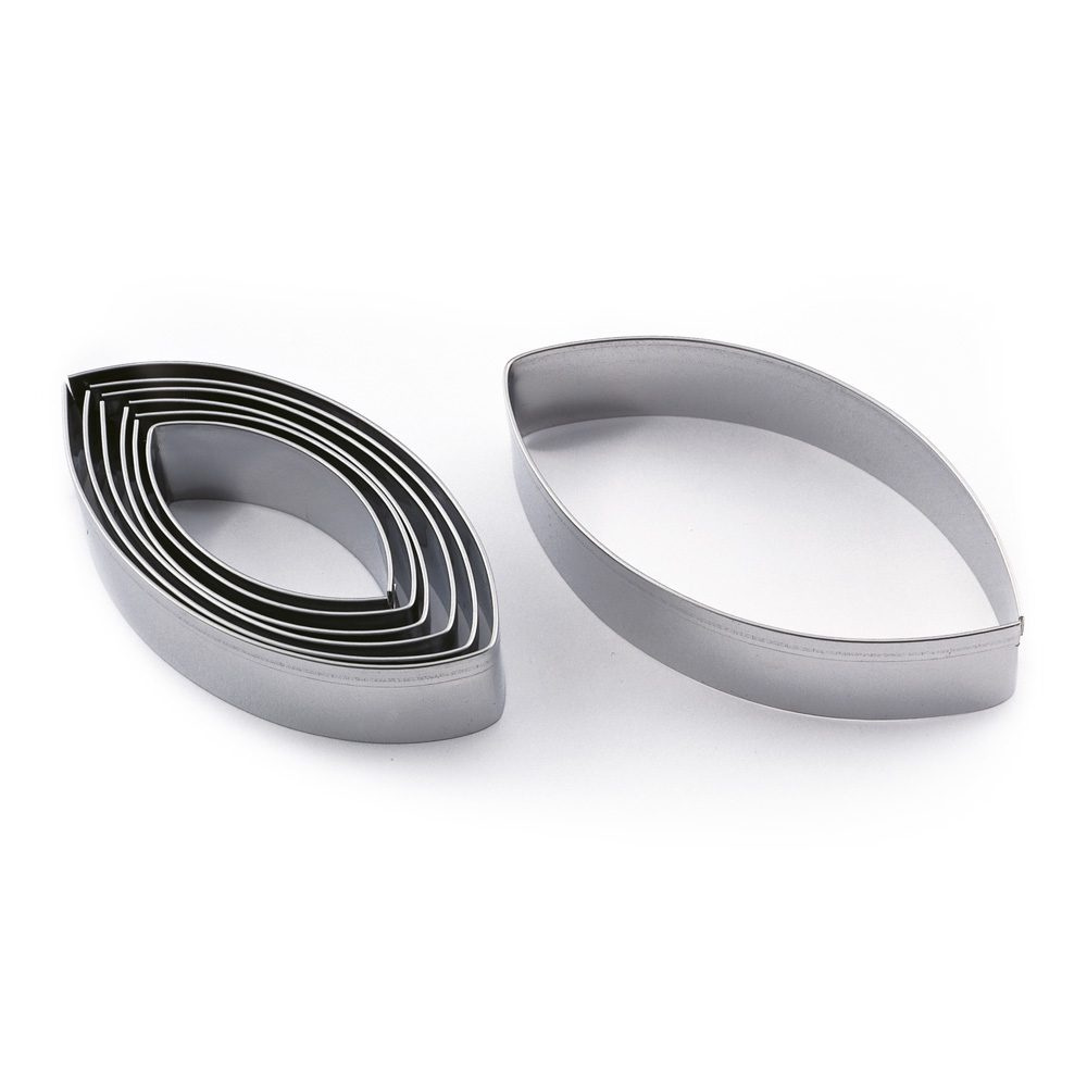 • Un set de sept pièces pour découper des gâteaux, des raviolis, de la pâte à sucre, du pain d'épices ou tout autre objet en belles feuilles. Parfait pour ceux qui veulent faire des gâteaux qui ressemblent à un bateau, à un œil, à une graine de lin (pas tout à fait, mais presque) ou à toute autre chose festive. Fabriqué en acier inoxydable. Les sept pièces sont de tailles différentes, la plus grande 100x50mm et la plus petite 55x25mm.