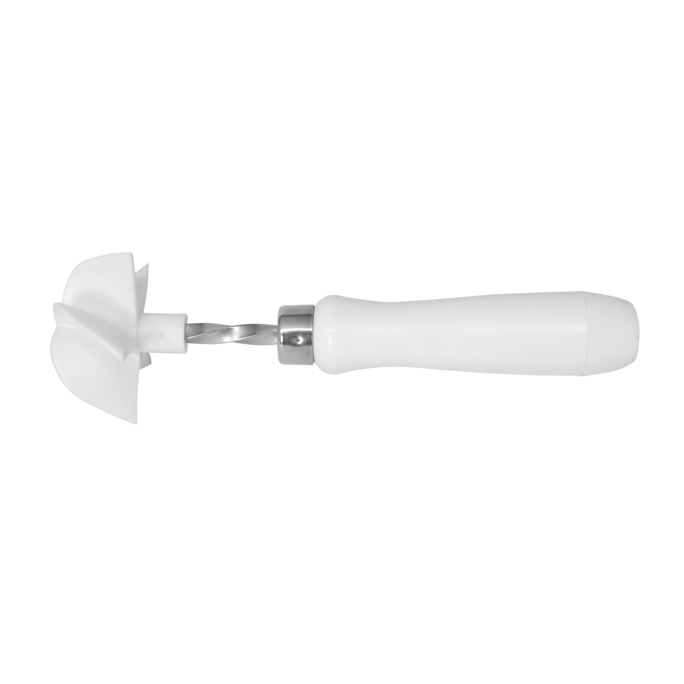 • Tampon à main avec poignée en polypropylène et tête d'impression en polyéthylène. Utilisé pour imprimer les petits pains kaiser. Le diamètre du tampon est de 64 mm, adapté à la taille standard des petits pains d'environ 50 à 70 grammes de poids de pâte. L'outil est pressé contre la boule de pâte arrondie et crée le motif caractéristique qui divise la surface en cinq segments.