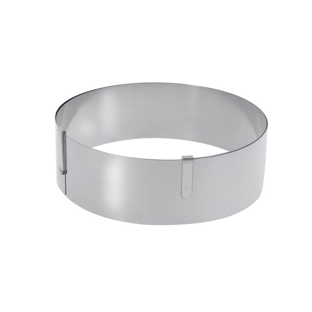 • Moule à anneau extensible de 18 cm à 36 cm de diamètre. Conçu pour la préparation de desserts, de tartes ou de tartelettes.