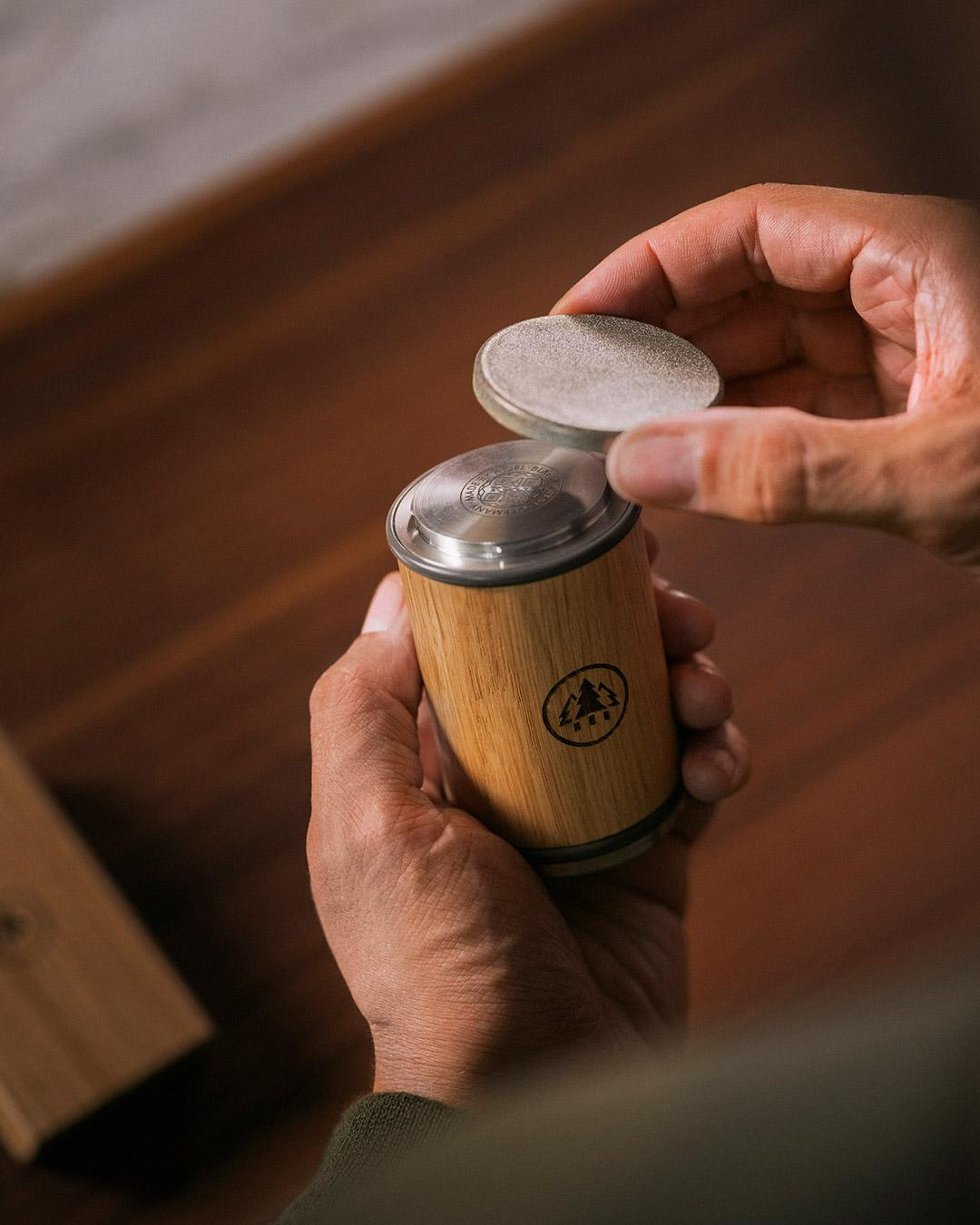 L'autre côté est doté d'une pierre à aiguiser en céramique. Elle est utilisée pour terminer l'aiguisage et polir le tranchant après le traitement grossier avec le disque diamanté. Comparez-la à une pierre à aiguiser plus fine (ou à du papier de verre plus fin). Ce côté peut être utilisé sans traitement préalable au disque diamanté et constitue un bon moyen d'entretenir votre couteau. Utilisez le côté fin tous les mois, toutes les semaines ou tous les jours pour garder votre couteau en pleine forme ! Pour ceux qui le souhaitent, il est également possible d'aller plus loin et d'utiliser différents types de pierres à aiguiser et de grosseurs pour obtenir un tranchant parfait sur le couteau. Le changement de pierre à aiguiser était déjà possible sur le Horl 2, mais avec le Horl 3, c'est maintenant plus facile que jamais. Grâce au nouveau système Quick-lock, vous pouvez facilement mettre et enlever les différents disques d'affûtage, ce qui vous permet de vous plonger dans l'affûtage de votre couteau à la perfection. Ces nouveaux disques d'affûtage Quick-lock conviennent à Horl 3 et Horl 3 Pro et ne sont pas compatibles avec les générations précédentes ou Horl 3 Cruise. Les disques d'affûtage Horl 2 ne sont pas non plus compatibles avec le Horl 3.