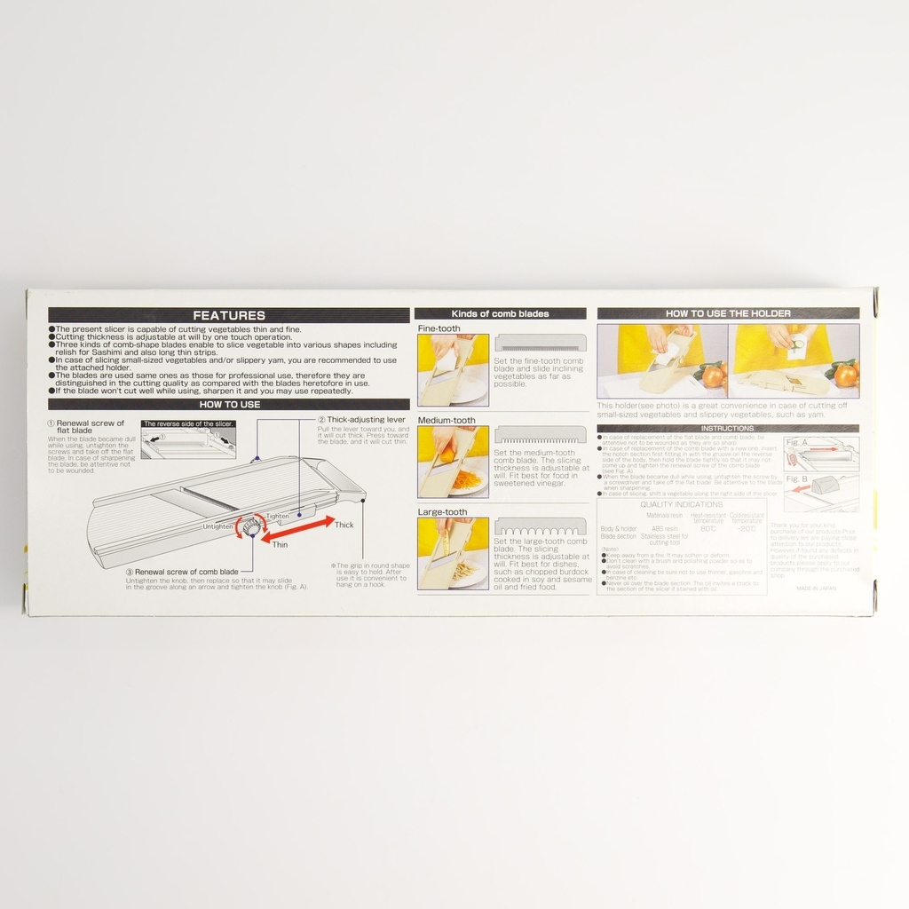 Shimomura fabrique ses mandolines à Niigata, une région connue pour la fabrication de couteaux et le travail du métal de classe mondiale, et cela se voit dans chaque détail.