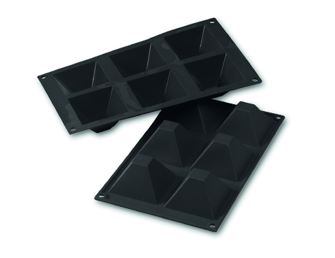 Moule en silicone du fabricant italien Martellato aux propriétés anti-adhérentes. Résiste à des températures comprises entre - 60ºC et 280ºC. En cuisine, le silicone est vraiment un matériau incroyable - il supporte de grandes plages de température, se démoule facilement et est facile à nettoyer. Utilisez-le comme moule à pâtisserie ou pour mouler, par exemple, des mousses, des pannacottas, des crèmes glacées ou toute autre idée crémeuse. Le silicone est solide mais suffisamment souple pour rendre les moules extrêmement faciles à utiliser. Il n'est pas nécessaire de lubrifier les moules et ils n'absorbent pas les arômes ou les parfums. Si vous vous intéressez à la pâtisserie, aux desserts ou tout simplement aux surfaces parfaitement lisses (comment ne pas le faire ?), les moules en silicone sont sans aucun doute l'accessoire qu'il vous faut. Ce moule permet de réaliser six pyramides. Les moules de Martellato mesurent 17,5 x 30 cm.
