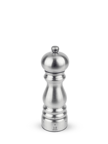 Le dernier né de la gamme Peugeot Paris, entièrement en acier inoxydable. La construction est toujours aussi solide et le moulin est garanti 25 ans. Réglage facile de la taille de la mouture, il suffit de tourner la bague au fond du moulin pour sélectionner la grosseur désirée. Système de réglage de précision breveté, de très fin à très grossier et tout ce qui se trouve entre les deux. 6 niveaux de mouture prédéfinis pour le moulin à sel et à poivre.