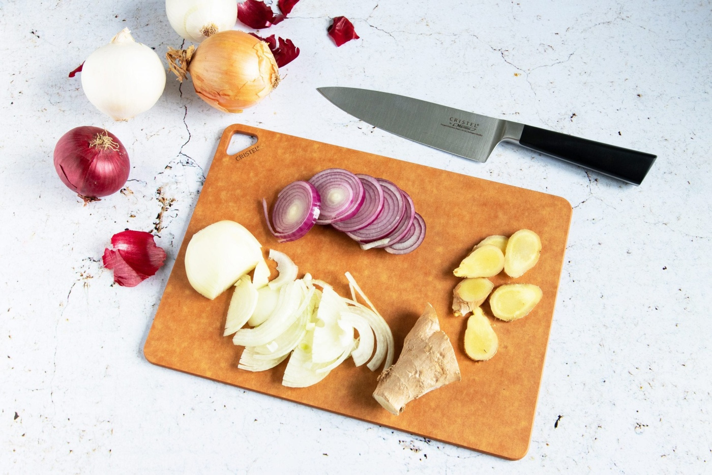 Ces planches à découper sont douces pour le couteau et, contrairement aux planches à découper en plastique, la surface ne présente pas d'entailles et ne peut pas se fissurer, comme c'est le cas pour les planches à découper en bois normales. La surface étant exempte de pores, les bactéries ne peuvent s'y cacher pour se développer.