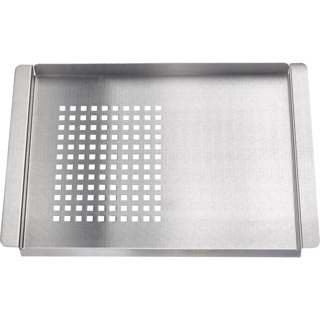 Plaque de gril en acier inoxydable à moitié lisse comme une plaque de cuisson et à moitié perforée. Elle vous permet de contrôler vos aliments et le processus de cuisson, ou de faire frire un smashburger sur un feu ouvert tout en grillant des rondelles d'oignon sur l'autre moitié.