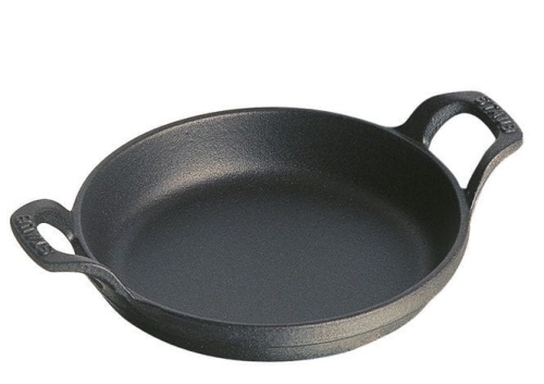 Poêle à four en fonte de qualité supérieure de Staub. L'intérieur et l'extérieur de la poêle sont recouverts d'un émail noir mat qui assure une très bonne fonction antiadhésive et empêche la poêle de rouiller ou de se décolorer. La poêle peut être utilisée dans un four jusqu'à 260 degrés. Elle est lavable en machine, mais comme certains détergents pour lave-vaisselle contiennent des substances corrosives, il est recommandé de la laver à la main. Livrée avec une garantie à vie pour tout défaut de matériaux ou de fabrication. Dimensions : nØ 12 cm / 250 ml nØ 16 cm / 400 ml nØ 20 cm / 750 ml
