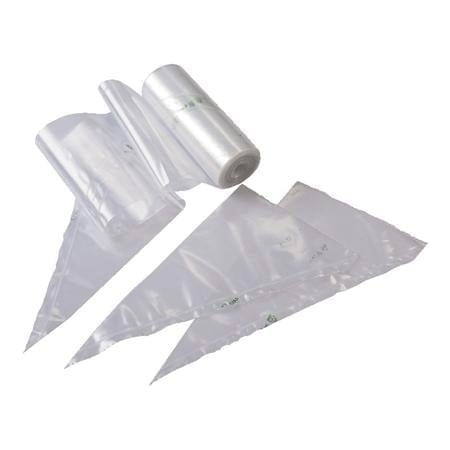 Sacs à liqueur transparents et jetables du fabricant italien Martellato. Les grands sacs mesurent 65 cm de long, contiennent six litres et ont une épaisseur de 90 microns. Ils sont disponibles en paquets de 100.