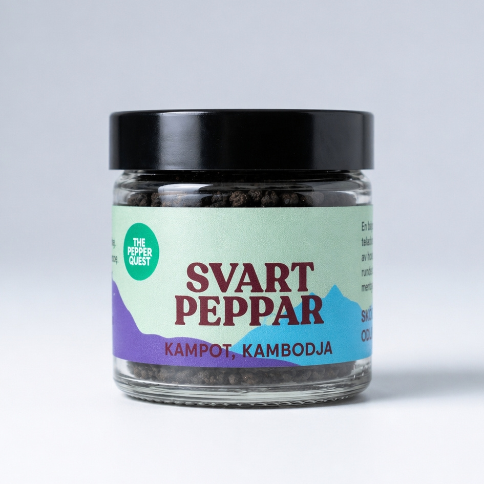 Kampot, au Cambodge, est l'un des lieux sacrés du poivre, et leur poivre est l'une des rares épices au monde à bénéficier d'une indication géographique (IG), une protection similaire à celle du champagne et du jambon de Parme. Il y a de bonnes raisons à cela. Sothy s'occupe de sa ferme avec une précision et un soin qui se reflètent dans le produit final, et chaque grain de ce bocal est trié à la main avec des pinces. Le poivre noir et le rouge proviennent exactement du même endroit, mais sont récoltés à des moments différents et avec des résultats différents. Le Kampot noir est cueilli avant la pleine maturité, avec la peau intacte, et séché d'une manière qui concentre les arômes sous la peau plutôt que de les laisser s'évaporer avec l'humidité.
