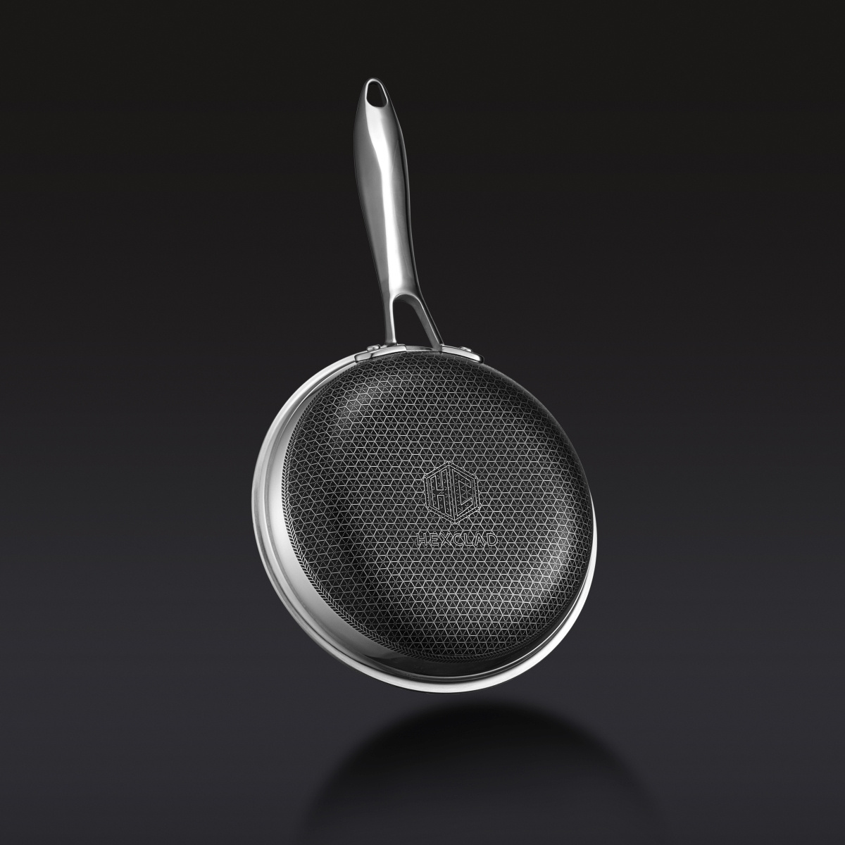La poêle à frire Hexclad Gordon Ramsay est la poêle hybride qui vous offre le meilleur de l'acier inoxydable, de l'antiadhésif et de la fonte - le tout dans une seule poêle. Grâce à sa construction unique et à sa surface hexagonale gravée au laser, les parties supérieures en acier inoxydable saisissent vos aliments à la perfection, tandis que les vallées antiadhésives facilitent le démoulage et le nettoyage.