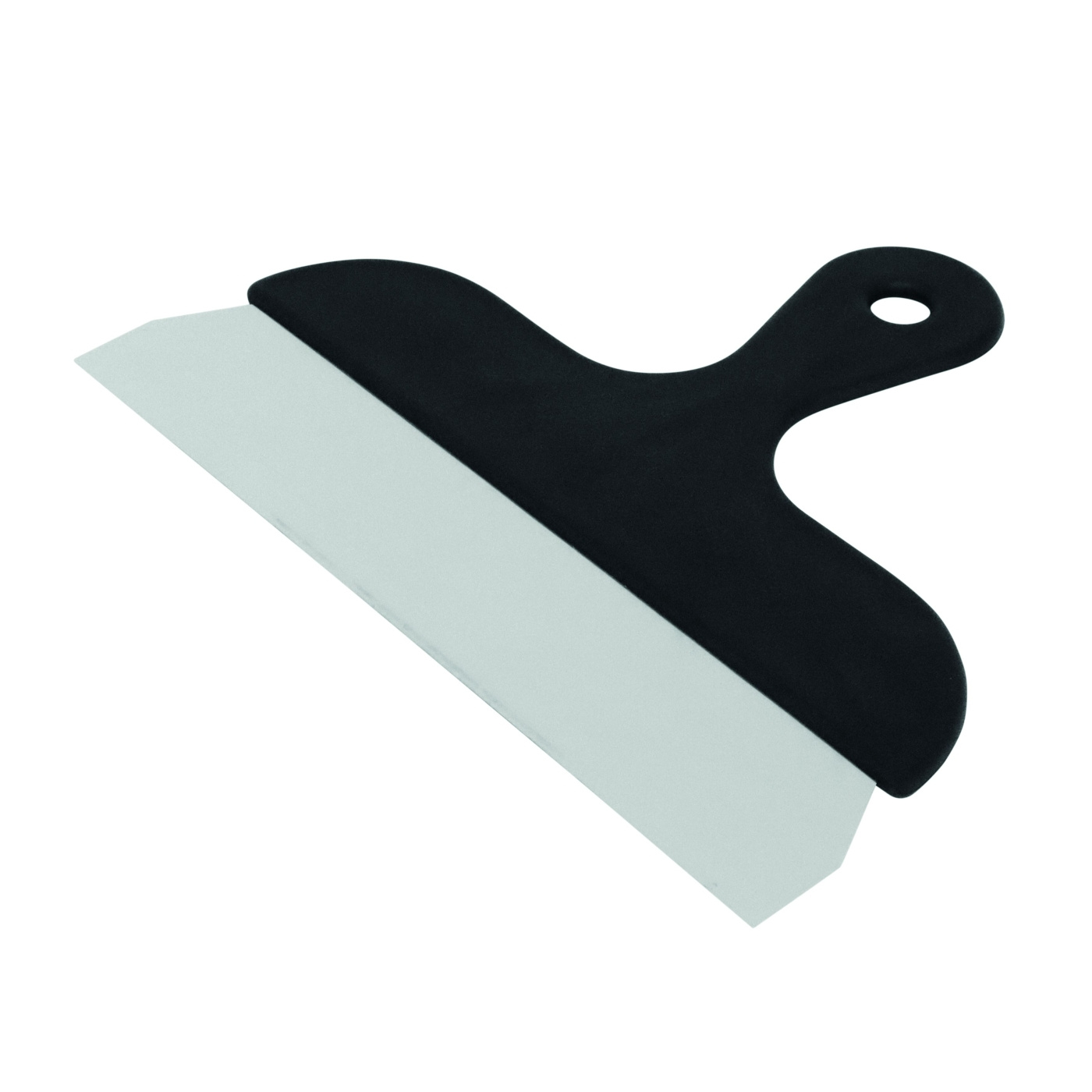 La lame est conçue extra rigide pour maintenir sa forme sous la pression du raclage, sans la flexibilité qui rend les spatules plus légères imprécises au contact d'une surface dure. Le manche est ferme et offre une prise directe sans jeu, ce qui rend la pression contrôlable et constante. Fonctionne évidemment aussi très bien pour racler la farine du plan de travail.