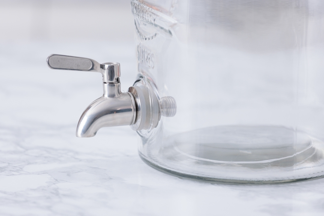 • Robinet en acier inoxydable adapté aux distributeurs Kilner. Le simple robinet en plastique standard est suffisant dans la plupart des cas, mais pour un usage plus intensif, un robinet robuste en acier inoxydable peut s'avérer bien plus efficace.