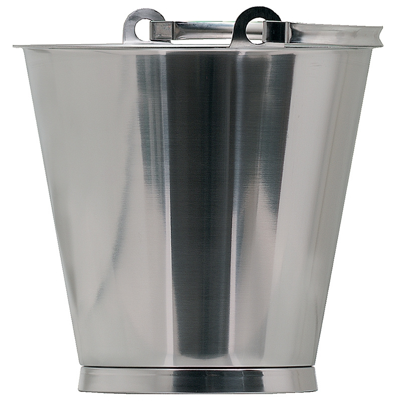 Seau avec bande de fond en acier inoxydable. Gradué avec des lignes d'échelle pour chaque litre.